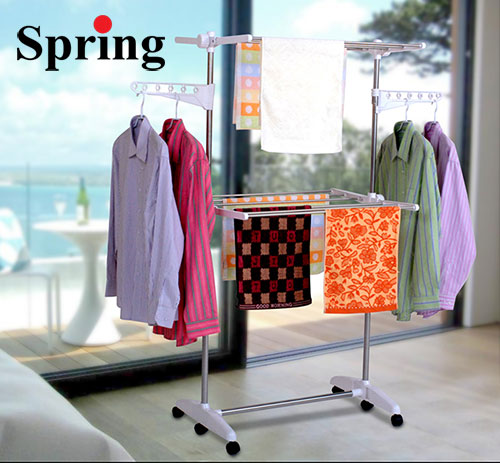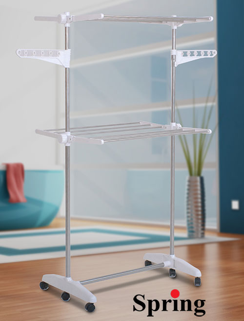 بند رخت اسپیرینگ دارای پیچ های تنظیم ارتفاع بندرخت برای اشغال کمترین فضا بهترین و مناسب ترین بند رخت برای فضاهای کوچک و آپارتمانی است.